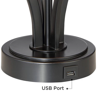 360 Lighting Heather Modern Industrial Table Lamps Set Of 2 With Round Risers 27 1/4″ Tall Dark Iron USB Charging Port Iron Burlap Drum Shade For Desk