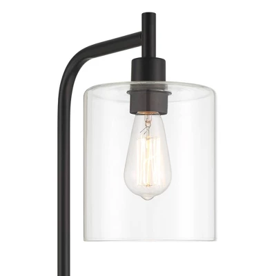360 Lighting Karis Modern Downbridge Floor Lamp 62 1/2″ Tall Matte Black Metal Clear Glass Shade For Living Room Reading Bedroom Office House Home
