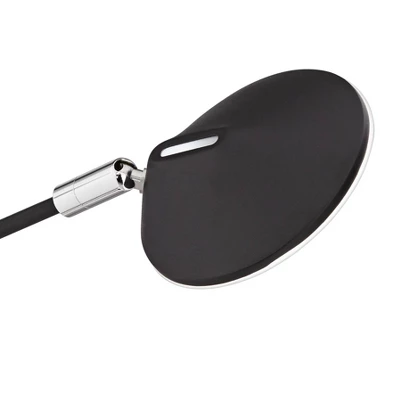 This energy-efficient LED floor lamp is perfect for contemporary or transitional spaces. It comes in a sleek black finish metal frame with adjustable arm. This design has a push dimmer switch located on the pole. Convenient and versatile, this floor lamp is a great addition to a study or sitting area.
